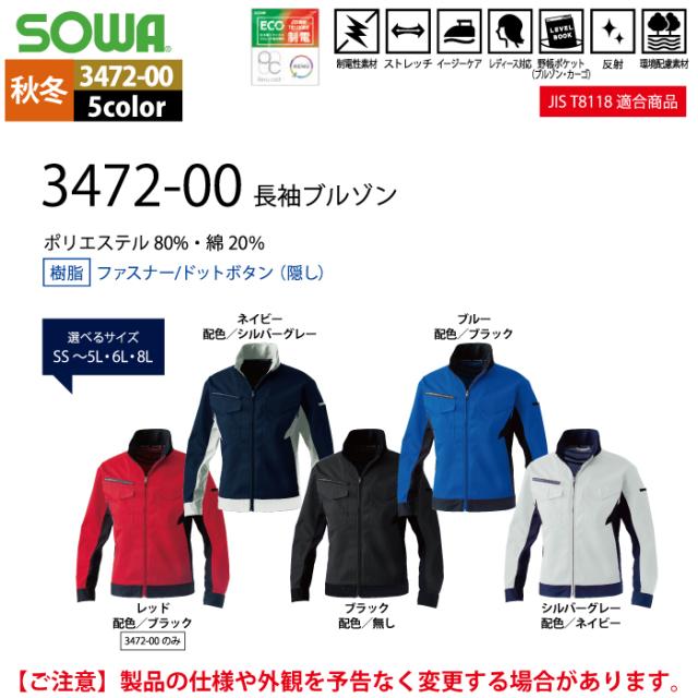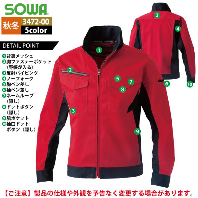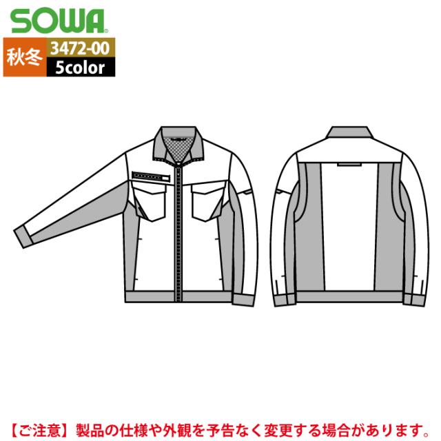 桑和 SOWA 作業服 秋冬用 3472-00 長袖ブルゾン 5L