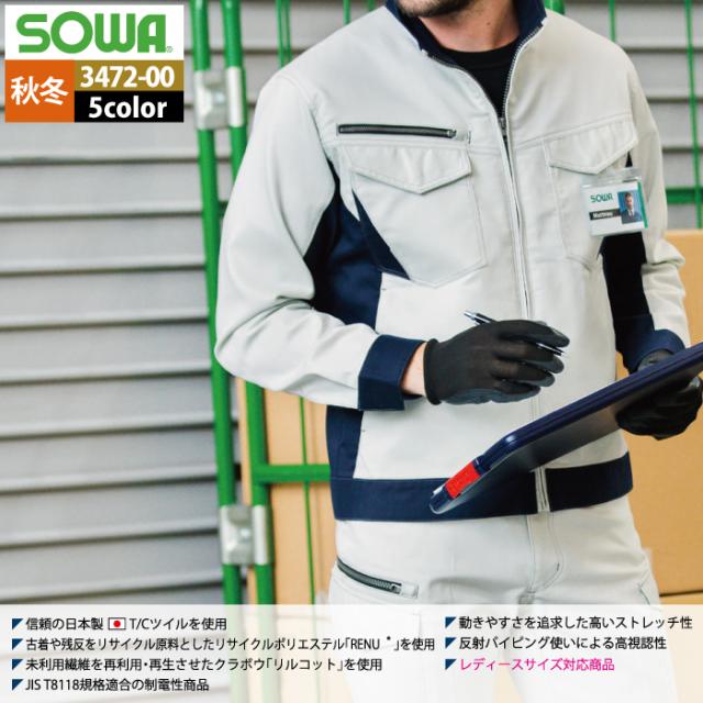 桑和 SOWA 作業服 秋冬用 3472-00 長袖ブルゾン 8L