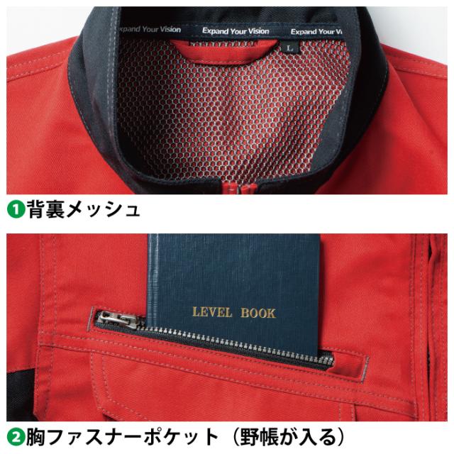 ◇機能:背裏メッシュ・胸ファスナーポケット(野帳が入る)・反射パイピング・ノーフォーク・胸ペン差し・袖ペン差し・ネームループ(隠し)・ドットボタン(隠し)・脇ポケット・袖口ドットボタン(隠し)