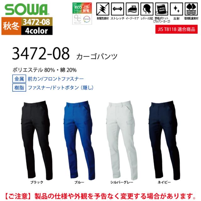 桑和 SOWA 作業服 秋冬用 3472-08 カーゴパンツ GS-88