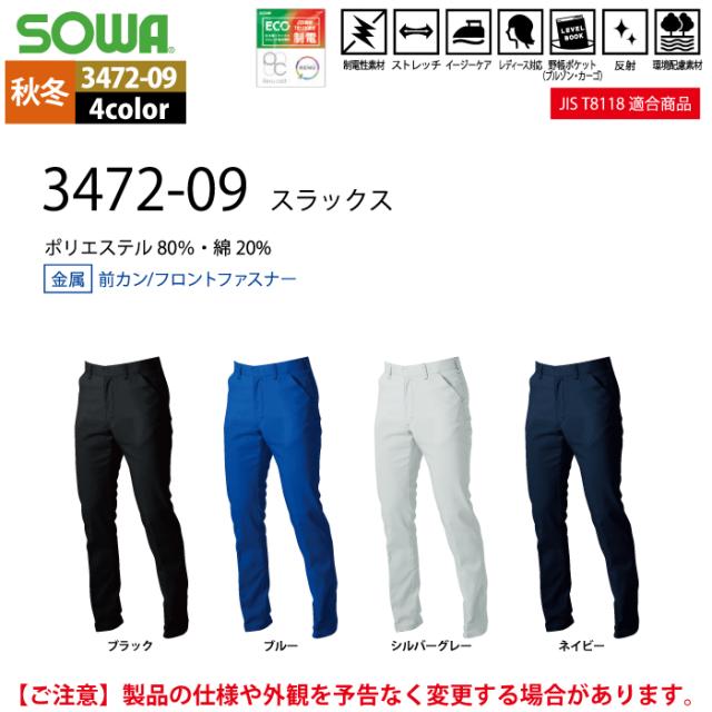 桑和 SOWA 作業服 秋冬用 3472-09 スラックス 91-100