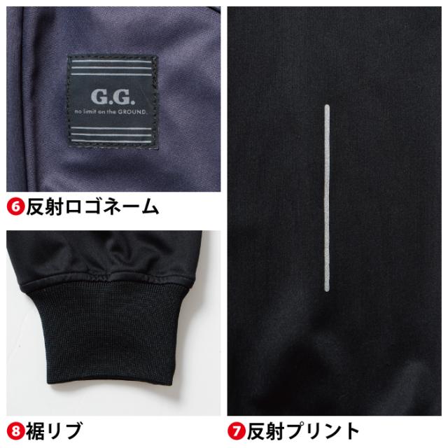 ◇機能:内側ウエストアジャスター・ウエストゴム・ベルトループ・ファスナーポケット(野帳が入る)・ロゴ入りラインテープ・反射ロゴネーム・反射プリント・裾リブ