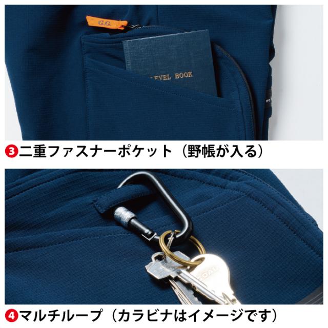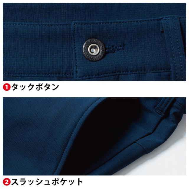 ◇機能:タックボタン・スラッシュポケット・二重ファスナーポケット(野帳が入る)・マルチループ・反射ロゴネーム・ロゴ入りラインテープ・ヒヨクフラップ付きポケット(野帳が入る)・ひざダーツ・裾リブ・ロゴプリント・反射パイピング・デオドラントテープ
