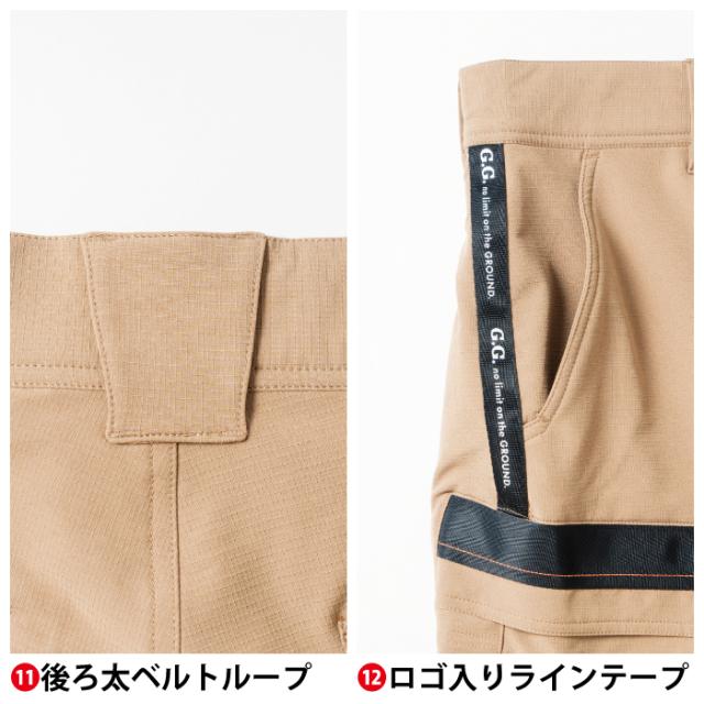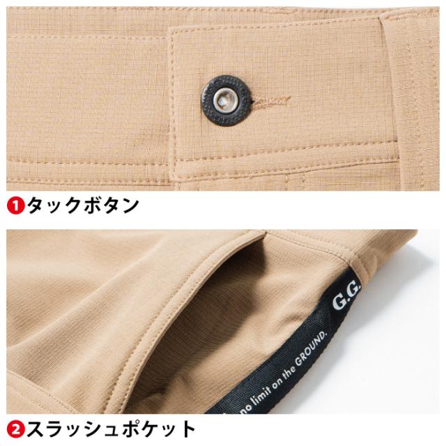 ◇機能:タックボタン・スラッシュポケット・右カーゴポケット(野帳が入る)・ロゴプリント・スルーポケット(長財布が入る)・マルチループ(スルーポケット内側)・ファスナーポケット・反射ロゴネーム・ペン差し・ひざダーツ・後ろ太ベルトループ・ロゴ入りラインテープ・反射プリント・デオドラントテープ・裾紐通しホール(紐は付いていません)