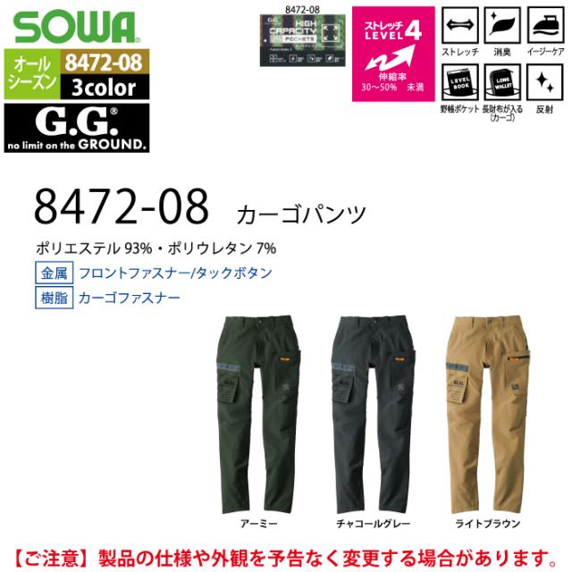 桑和 SOWA 作業服 8472-08 カーゴパンツ 3L