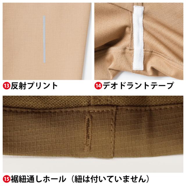 ◇機能:タックボタン・スラッシュポケット・右カーゴポケット(野帳が入る)・ロゴプリント・スルーポケット(長財布が入る)・マルチループ(スルーポケット内側)・ファスナーポケット・反射ロゴネーム・ペン差し・ひざダーツ・後ろ太ベルトループ・ロゴ入りラインテープ・反射プリント・デオドラントテープ・裾紐通しホール(紐は付いていません)