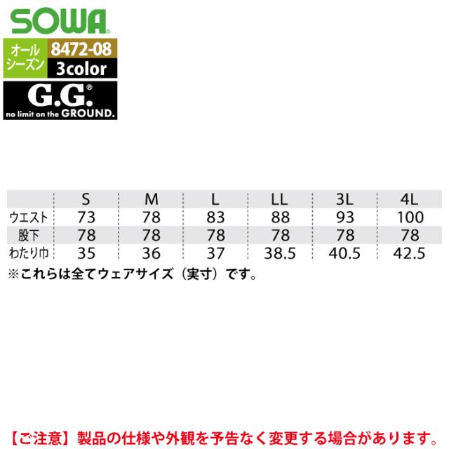 桑和 SOWA 作業服 8472-08 カーゴパンツ 4L