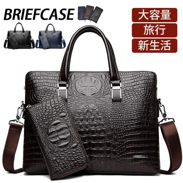 ビジネスバッグ メンズ トートバッグ 通勤バッグ ワニ柄 肩掛け a4 大容量 PC カバン 収納 ブリーフケース 父の日 多機能