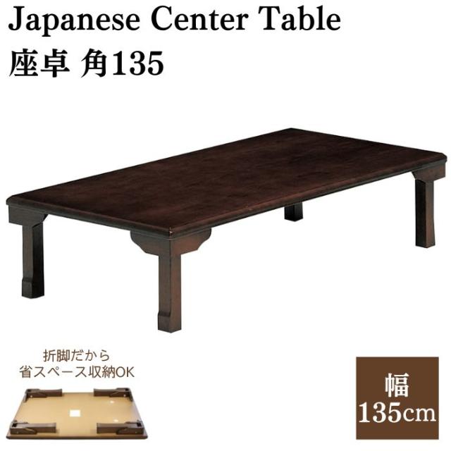 座卓 角135 折脚座卓 折りたたみテーブル 135cm ローテーブル 角型 長方形 K-135V 折り畳み センターテーブル テーブル 机 木製 天然木 折れ脚 コンパクト 大商産業