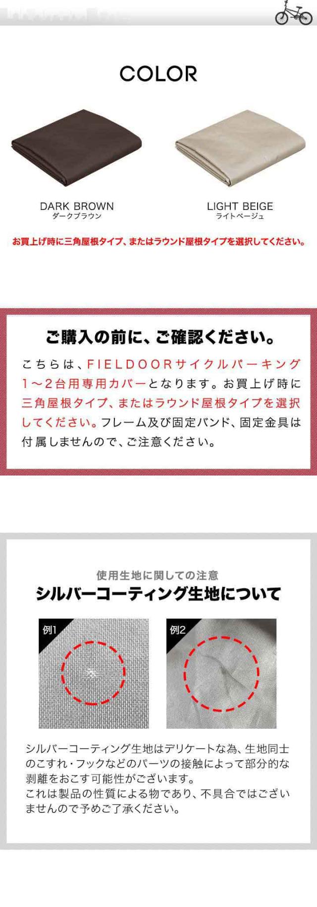 FIELDOOR サイクルパーキング 1台〜2台用 専用カバー 高耐候性 420D生地 ラウンド屋根用/三角屋根用 自転車置き場 交換用カバー 替えカバー 替えシート 交換用 交換部品 UVカット 遮熱 耐水加工 自転車収納 屋外 保管 雨よけ 1年保証 送料無料