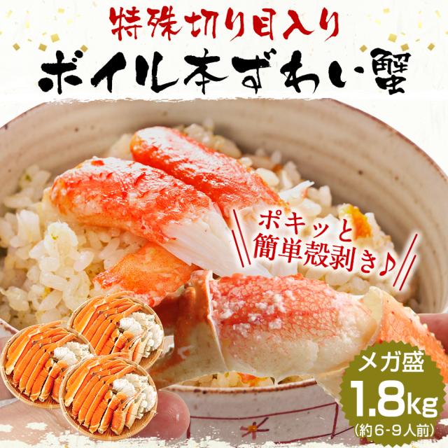 かに カニ 蟹|クーポンで★12,800円送料無料 かに カニ 蟹 切り目入り カット済み ボイル本ずわい蟹1.8kg(総重量2.4kg) 送料無料 ずわいがに ズワイガニ ズワイ ずわい のし可 お歳暮 ギフト