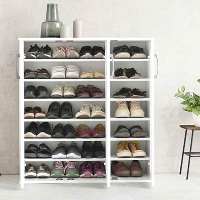 収納は、最大約28足収納可能です。(棚板12枚使用時)