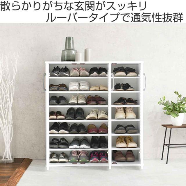 シューズボックス 幅89cm 最大28足収納可能 木目 通気性 ( 靴箱 シューズラック 下駄箱 玄関 収納棚 ルーバー 靴 収納 可動棚付き 食器棚 ルーター収納 扉付き 木製 )