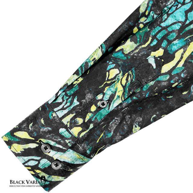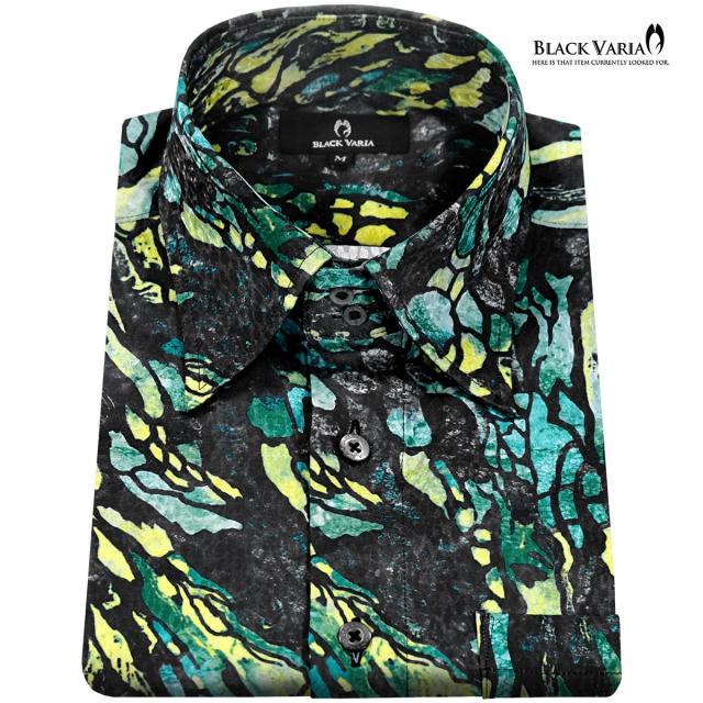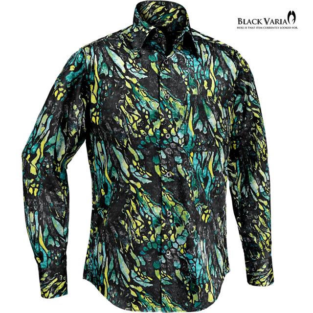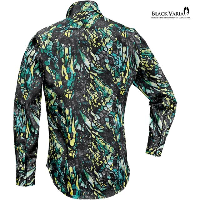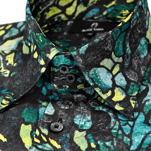 サテンシャツ ドゥエボットーニ ステンドグラス ドレスシャツ レギュラー ジャガード パーティー メンズ men(グリーン緑) 231901