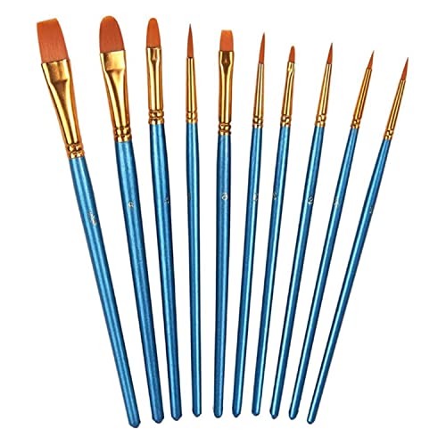 DFsucces 画材筆 ペイントセット ブラシ アクリル筆 水彩筆 油絵筆 画筆 丸筆 平型筆 平型円頭筆 短毛筆 10本セットブルー