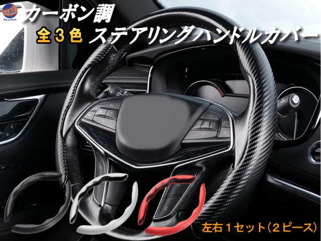 カーボン ステアリング ハンドルカバー 汎用 2ピースセット ステアリングカバー 汚れ防止 滑り防止 スタイリッシュ オールシーズン対応 簡単取り付け カーボン調グリップ ハンドル 保護カバー カスタム 内装パーツ ドレスアップ 軽自動車 普通車 高級感