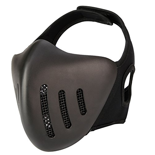 ・素材:外側部分が高品質なTPU素材を採用し、耐衝撃性と耐摩耗性が抜群で、口や鼻といった大事な部位をガッチリとガードできます。塗装は環境配慮型のスプレー塗料を使用し、色の堅牢性はされており、付着性や耐久性などに優れ、無公害で使用出来ます。インナー部分がネオプレン素材で作られ、クッション性があるので着用感が良く、側面部からの防弾性能もあります。