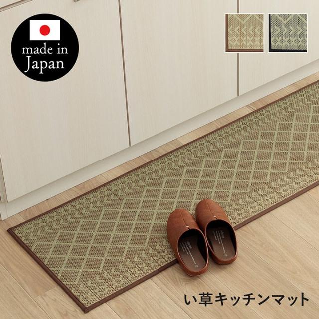 ベージュ ネイビー 柄 いぐさ い草マット 乾きやすい ウレタン 吸水 速乾 消臭 防臭 防音 長め キッチンラグ 床暖房対応 幅広 和風 韓国 風 ワイド 暖かい 国産 柔らかい 北 南 東 西