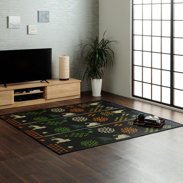 ラグ い草 3畳 夏 い草ラグ カーペット 夏用 ねこ 猫柄 絨毯 滑り止め ござ い草カーペット おしゃれ オールシーズン 長方形 ラグマット 年中 いぐさ 花ござ
