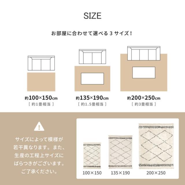 ラグ カーペット 1.5畳 冬 厚手 絨毯 ベニワレン風 ウィルトン モロッカン シャギー オールシーズン 冬用 シャギーラグ ホットカーペット 床暖房 長方形