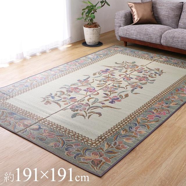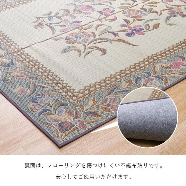 ラグ い草 2畳 夏 い草ラグ カーペット 本間 裏付き 夏用 絨毯 ござ 花 花柄 い草カーペット おしゃれ オールシーズン 正方形 ラグマット 年中 いぐさ