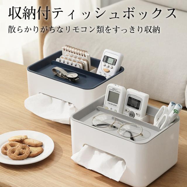 ティッシュケース 収納付ティッシュボックス リモコンラック 多機能 スマホスタンド コンパクト ティッシュBOX 小物入れ シンプ
