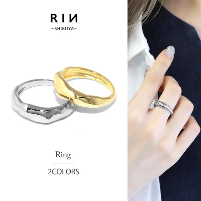 アクセサリー 指輪 リング シンプル 18金 アート ゴツゴツ 溶け 岩肌模様 テクスチャ ファッションリング 凛