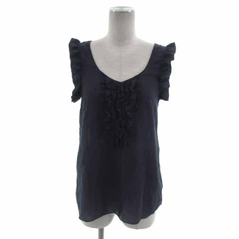 【中古】ジルスチュアート JILL STUART カットソー レース フリル ノースリーブ バックリボン 日本製 ネイビー 紺 S