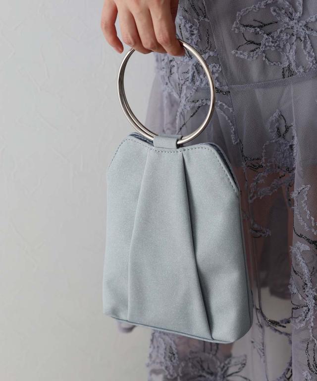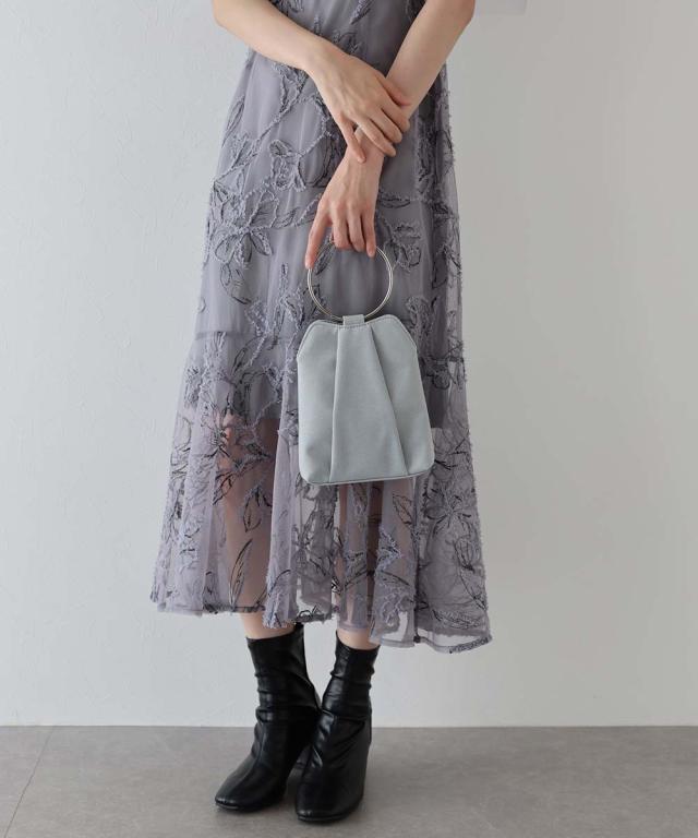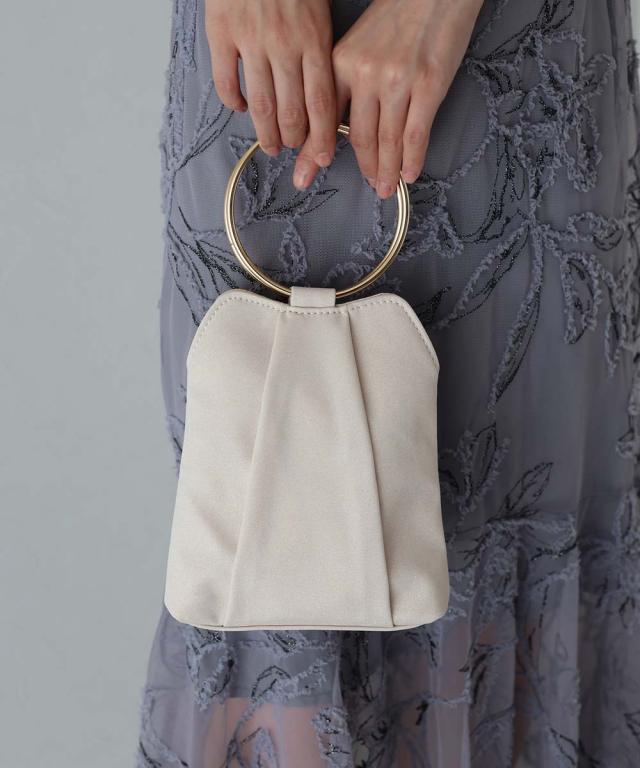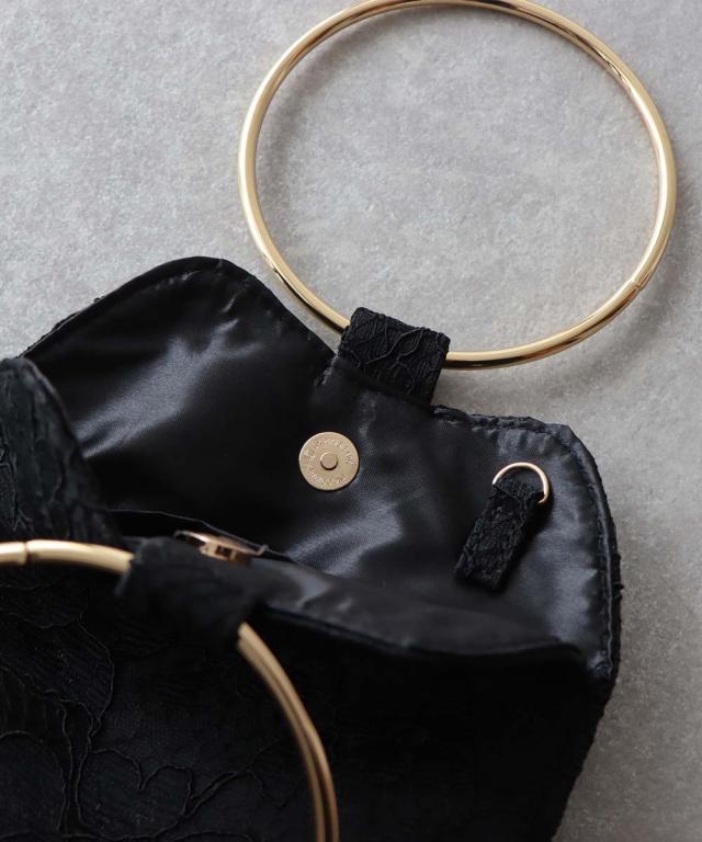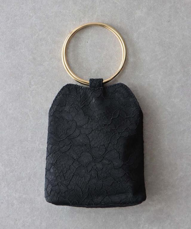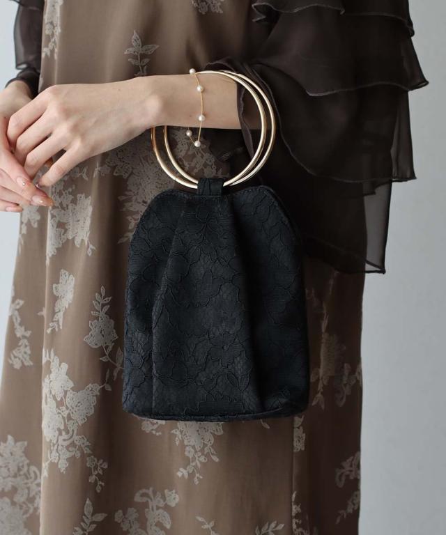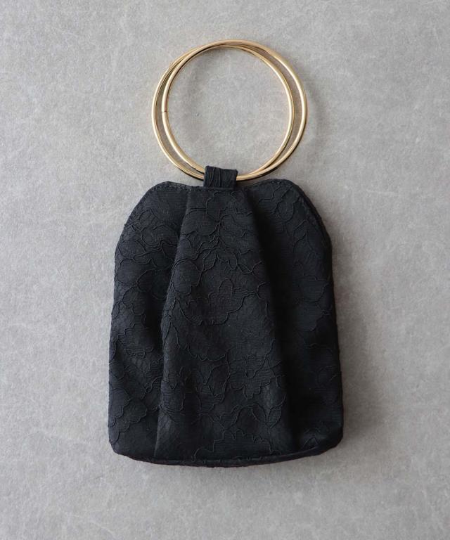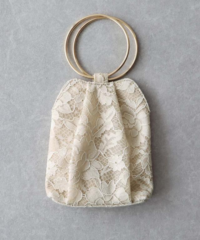 大きなリングハンドルとレースが華やかなミニバッグ。