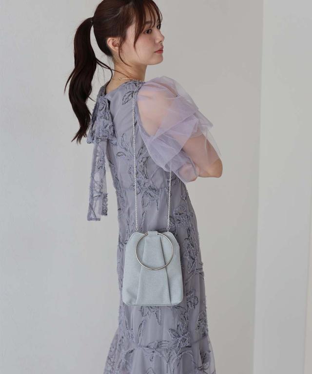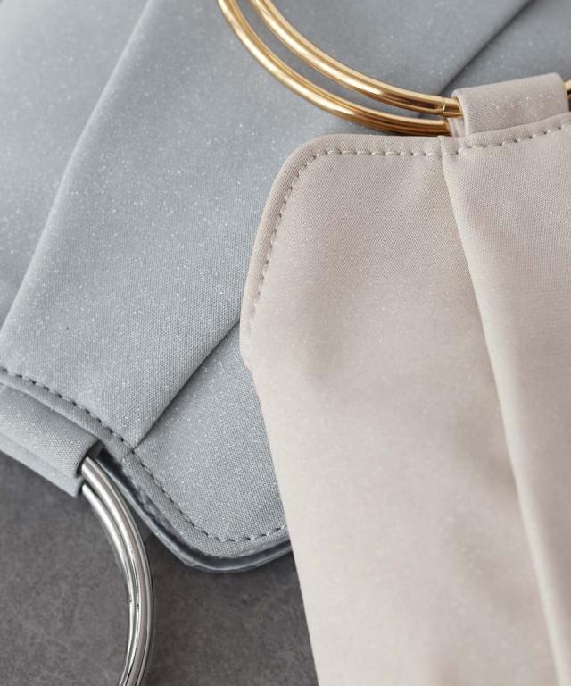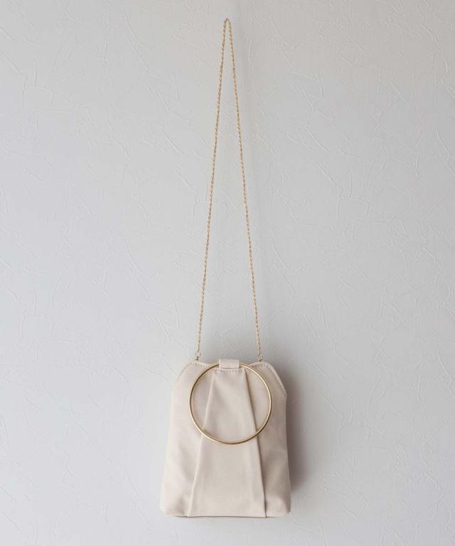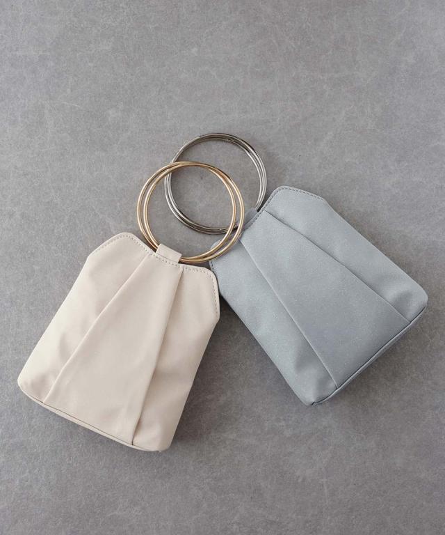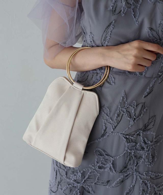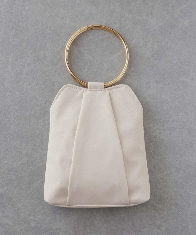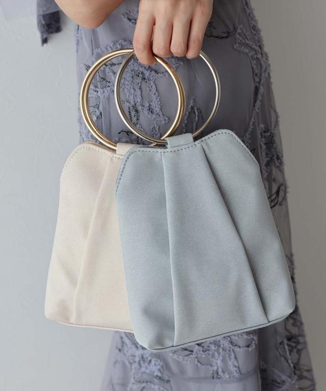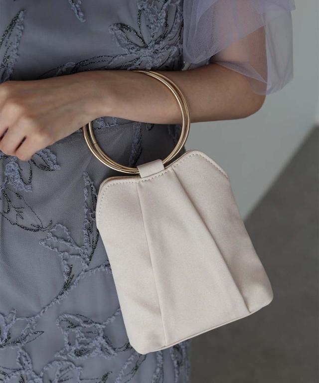大きなリングハンドルとレースが華やかなミニバッグ。