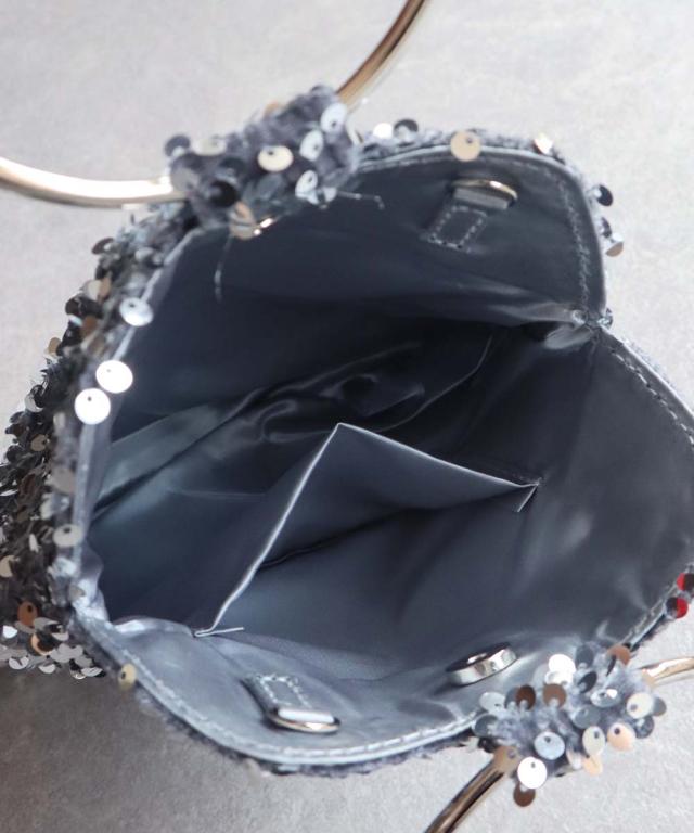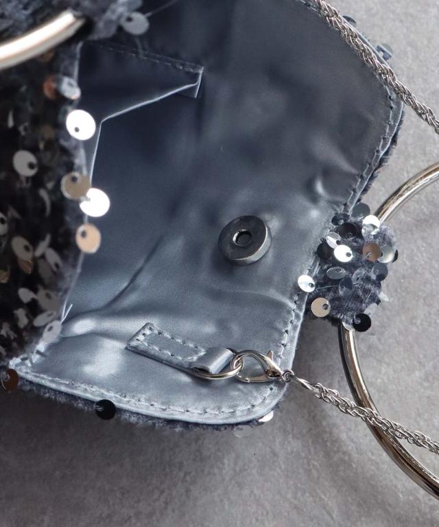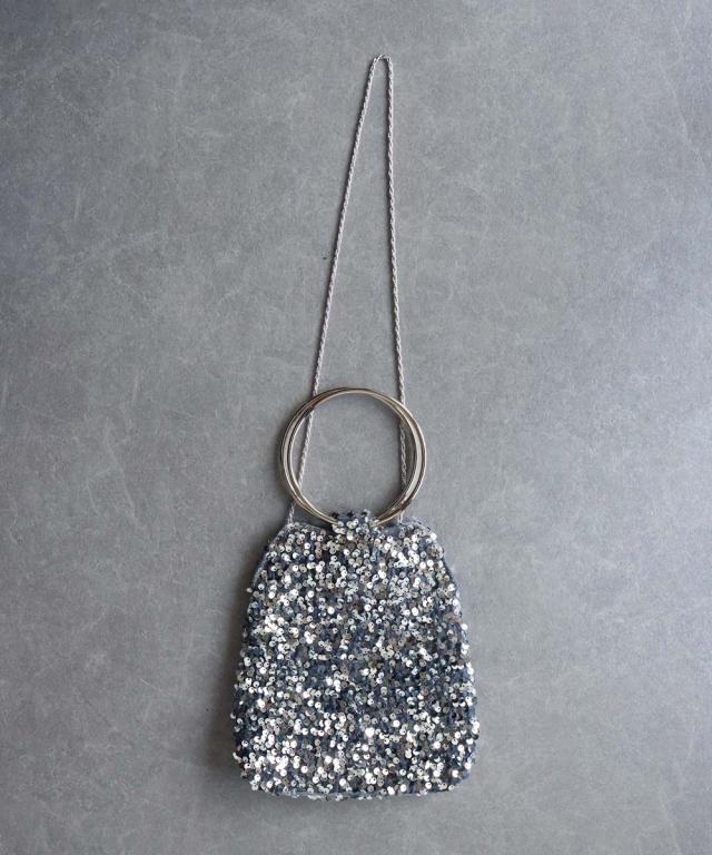 華やかなコードレースと煌めくスパンコールベロアのリングミニバック