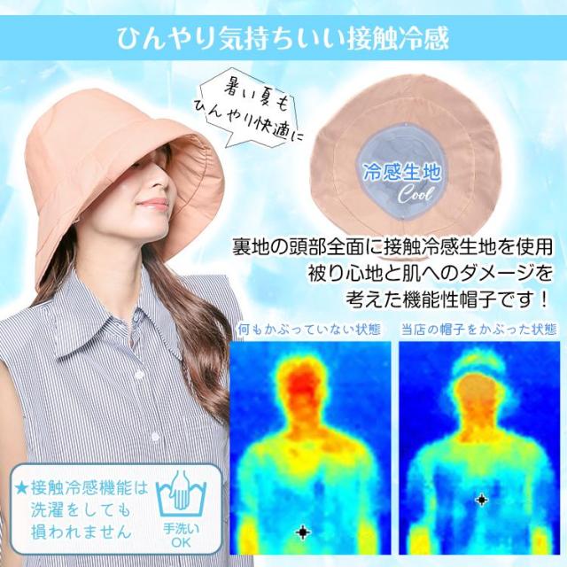 涼感ハットUV帽子 レディース 春 夏 秋 UVカット 遮光100% ひんやり サファリハット つば広 UV ハット 日よけ 折りたたみ 女優帽 飛ばない