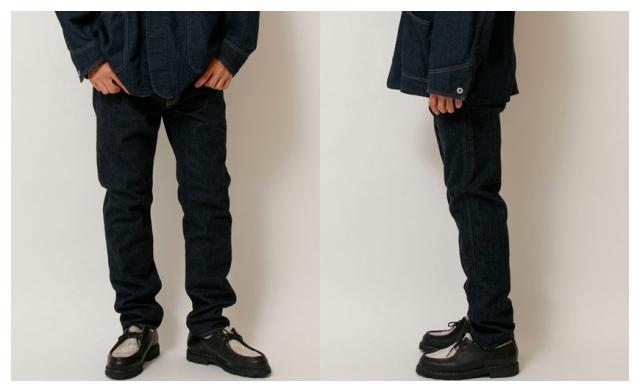 デザインはすっきりと着こなせるスリムテーパードジーンズです。