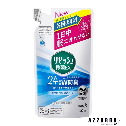 花王 リセッシュ 消臭スプレー 除菌EX 香りが残らないタイプ 320ml 詰め替え【ドラッグストア】【ゆうパケット対応】 KAO 衣類 靴 ペット 無香 消臭 除菌 芳香 つめかえ 詰替え 布製品 空間用消臭剤