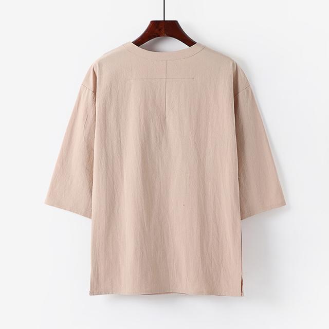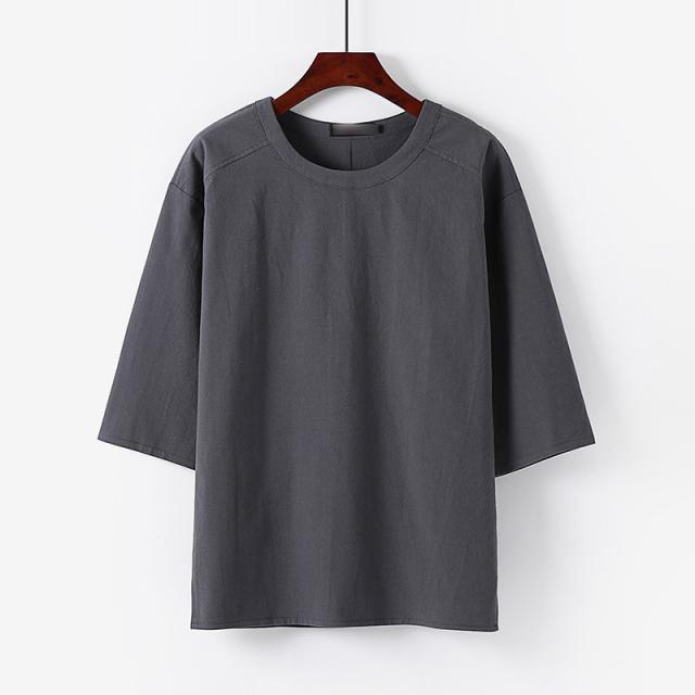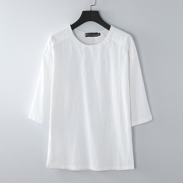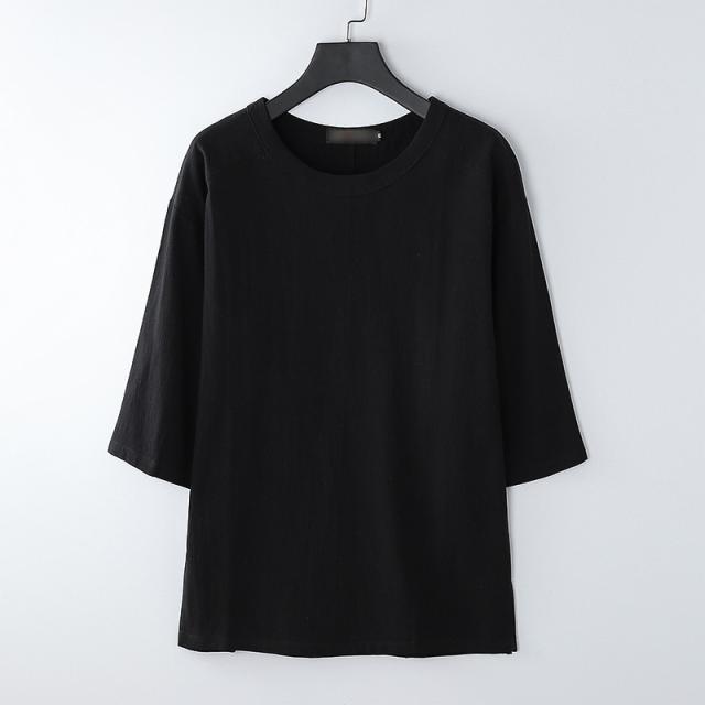 七分袖 tシャツ メンズ 綿 コットン カットソー サイドスリット 丸首 大きいサイズ 夏 カジュアル 無地
