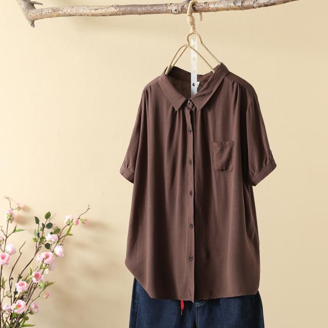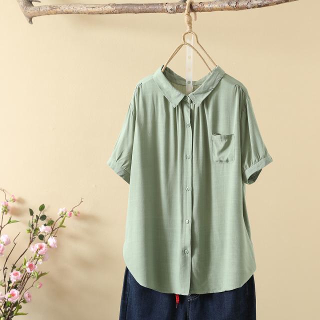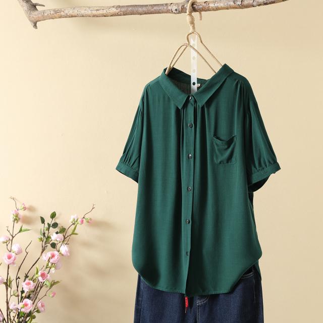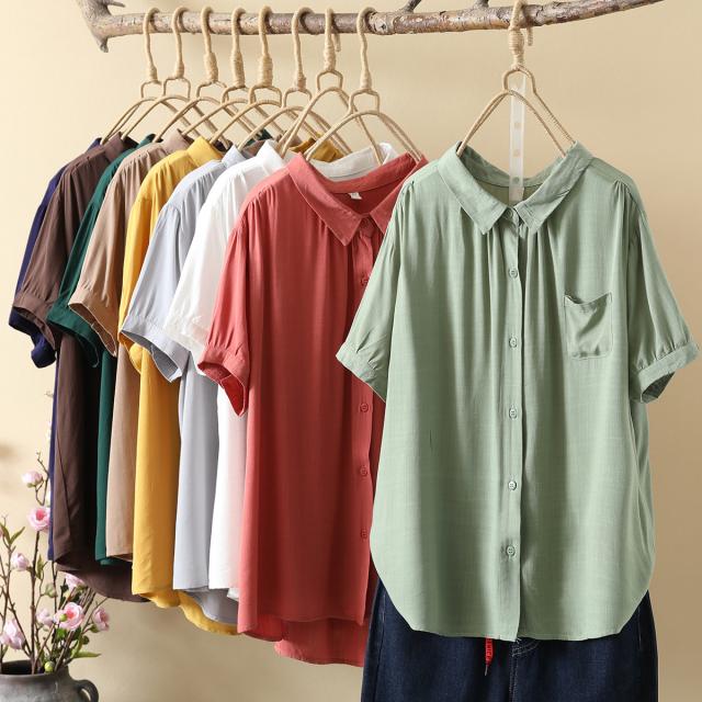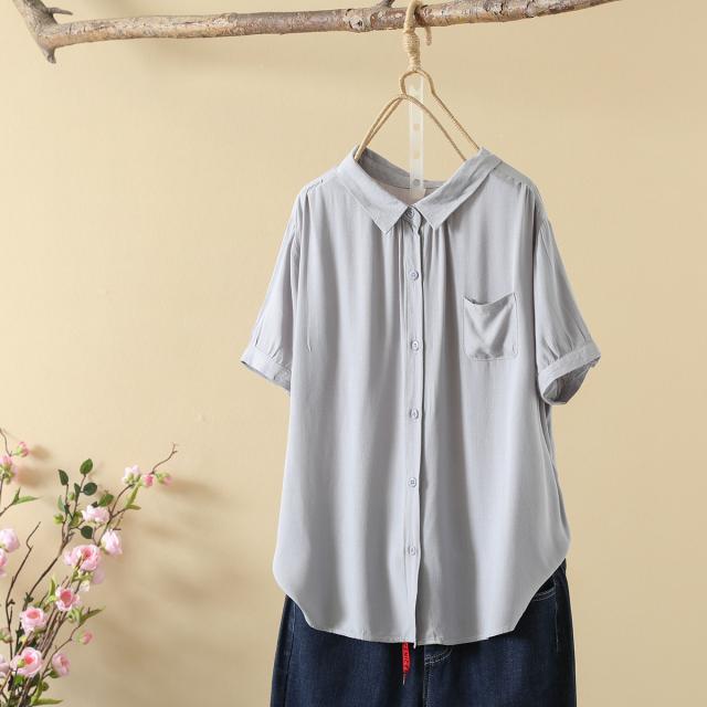 シャツ レディース 半袖 シャツブラウス 白シャツ フレンチ 春 夏 無地 レトロ バイカラー ゆったり 半袖 カジュアル 大きいサイズ 体型カバー ゆったり 通勤 夏 上品 20代