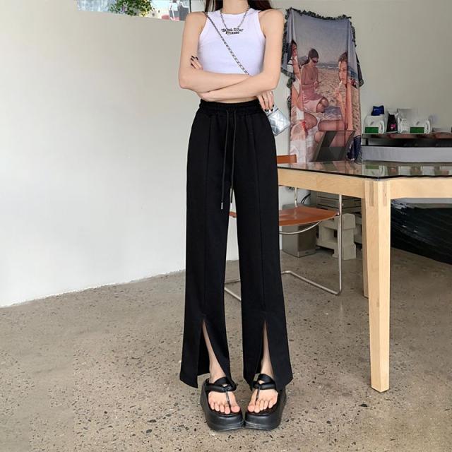 スウェットパンツ スリット ソフトワイドパンツ フロントスリットパンツ レディース ウエストゴム リラックスパンツ スエット ロング丈 美脚 脚長 ボトムス 大人カジュアル 抜け感