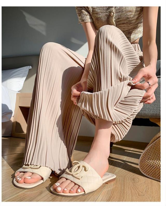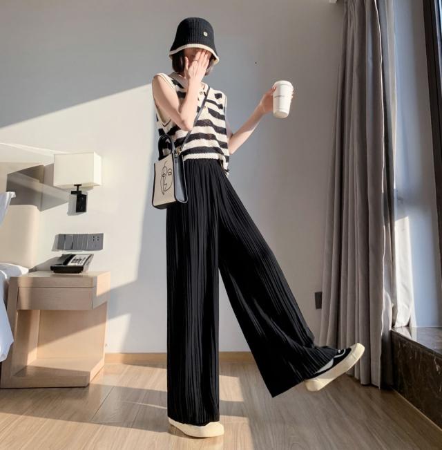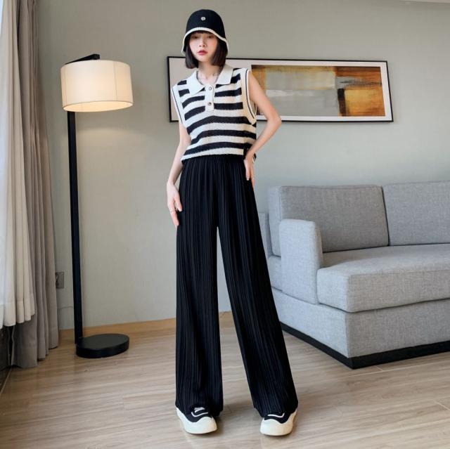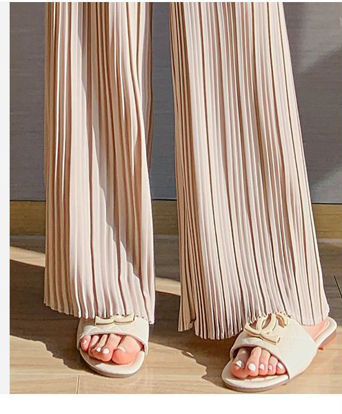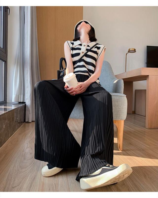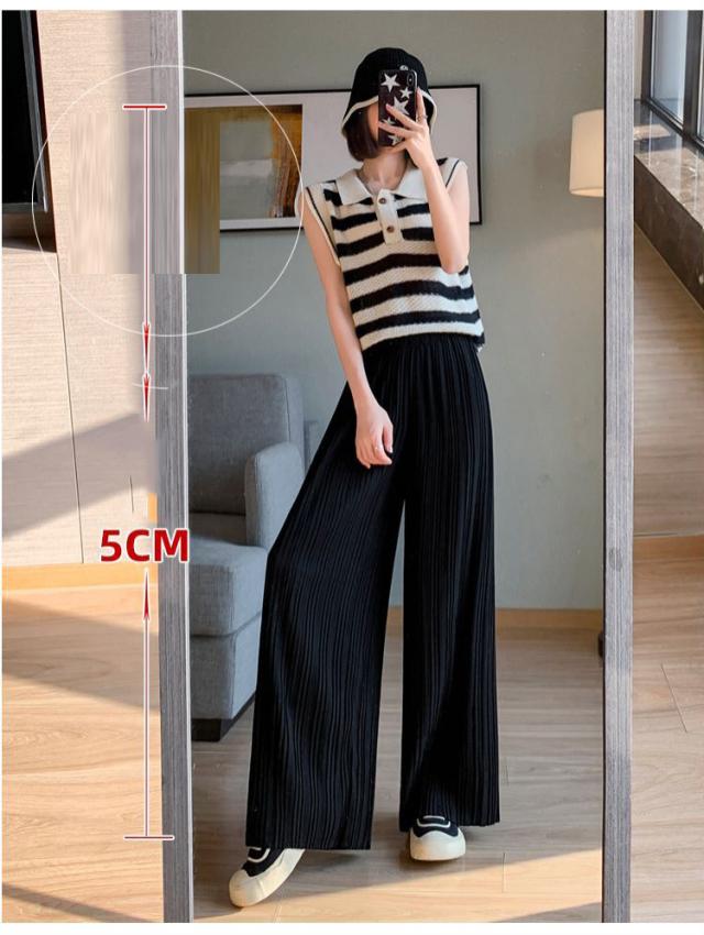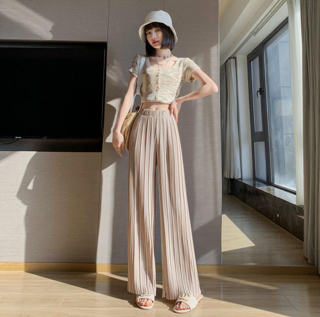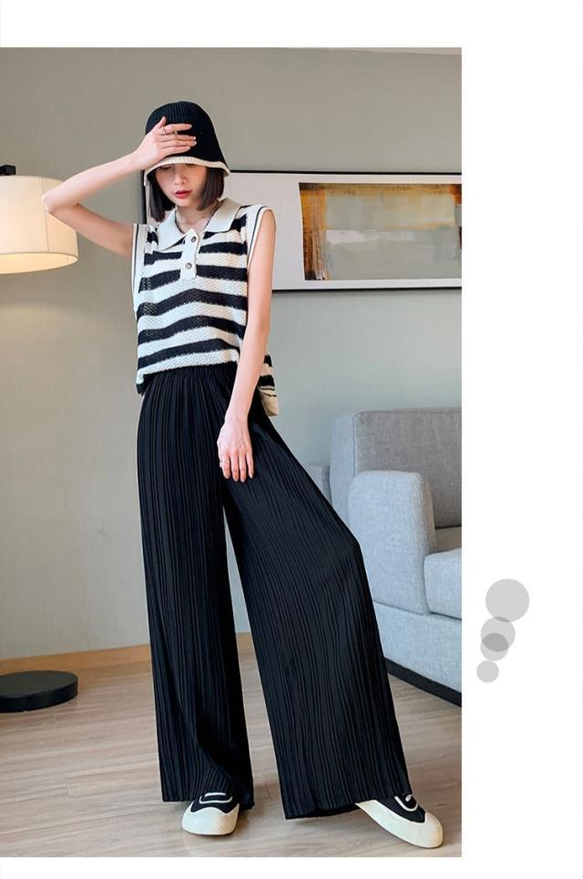 サラッと涼しく夏プリーツパンツ 無地 プリーツ ワイド ルーズ ロングパンツ 4カラー プリーツパンツ 柔らか素材 ウエストゴム 美脚見え ストレートシルエット