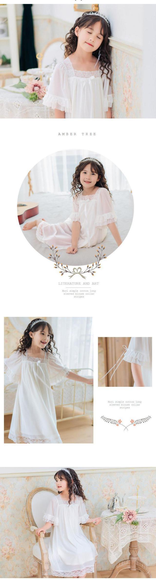 ネグリジェ パジャマ 女の子 半袖 プリンセス 寝巻き ワンピース レース ナイトドレス お姫様 ルームウェア キッズ ナイトウェア 部屋着 寝間着 可愛い
