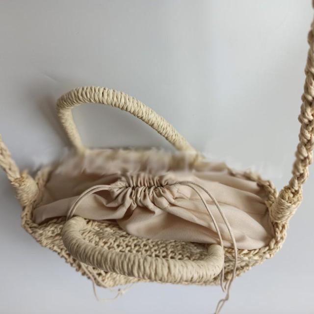 かごバッグ ショルダー 斜めがけ 手提げ 両用 透かし編み 浴衣バッグ 普段 内袋付き 巾着式 レディース ハンドバッグ 小さめ 可愛い