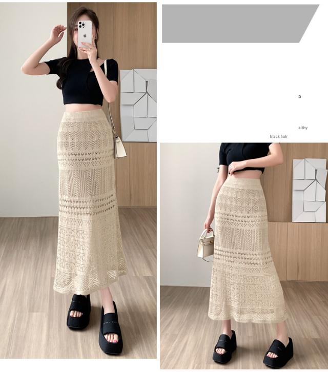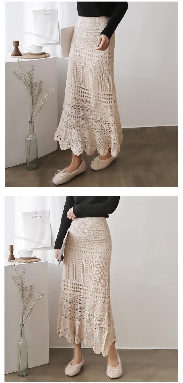 クロシェ かぎ編み ロングスカート マーメイドスカート ロング丈 膝下スカート 春 夏 ママ オフィスカジュアル レース 大きいサイズ ウエストゴム 体型カバー クロシェニット ストレッチ