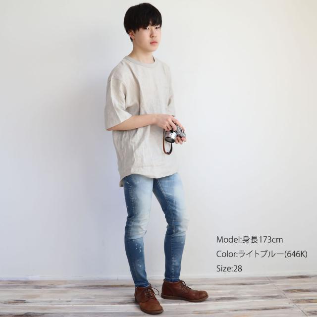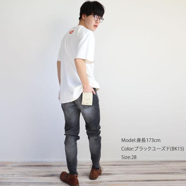 ビッグジョン キャロットレッグハイパーストレッチ テーパード (mmm134j) 646k bk15 BIG JOHN 次世代型アスレジャージーンズ iSKO イスコ キックバック ジッパーフライ ダメージ ペンキ加工 切りっぱなし メンズ デニムパンツ Carrot Leg フルレングス スキニー
