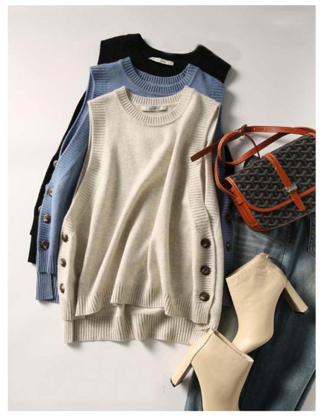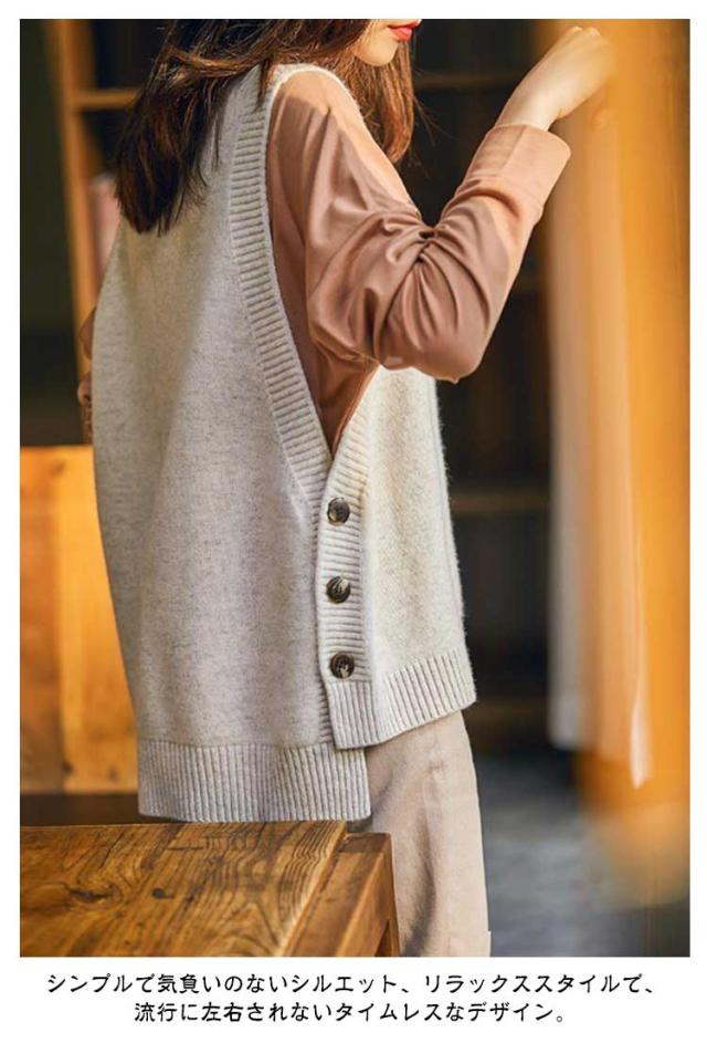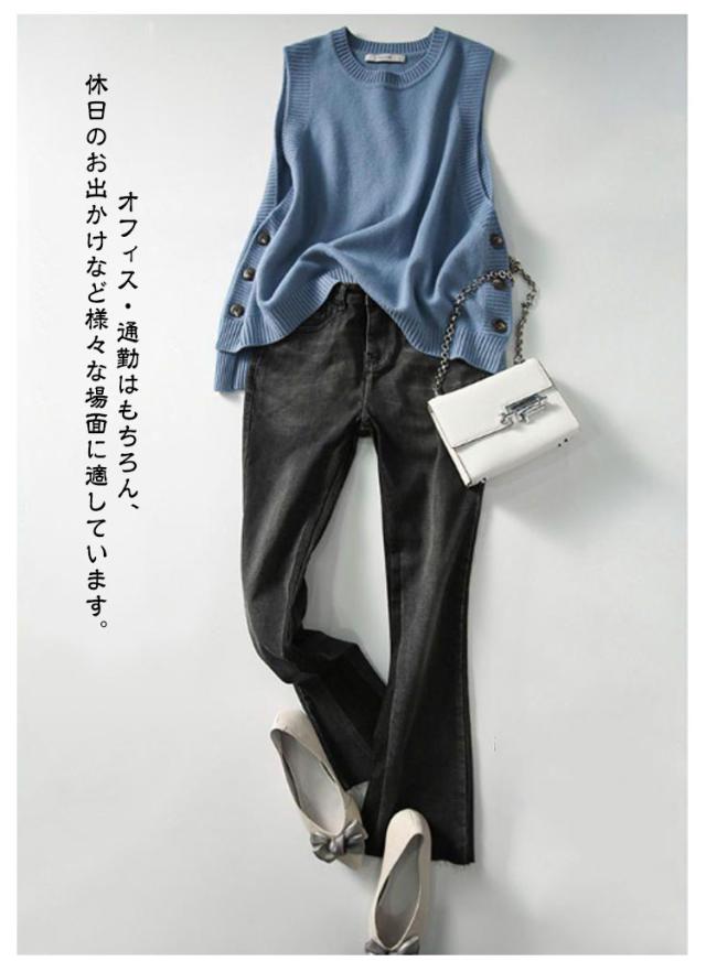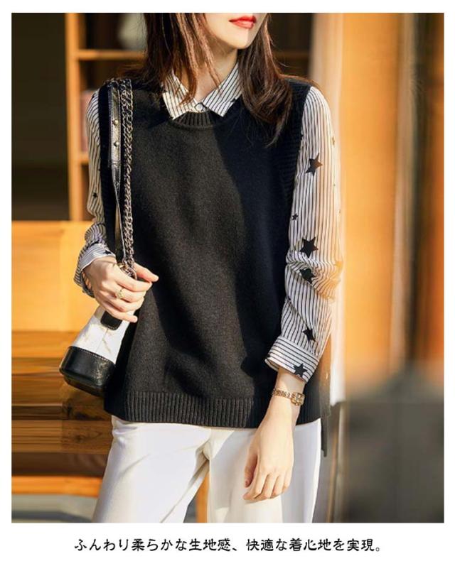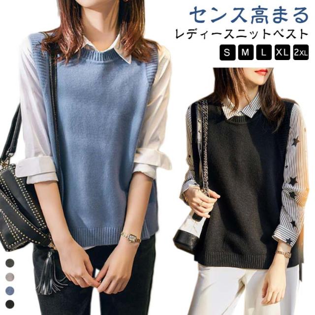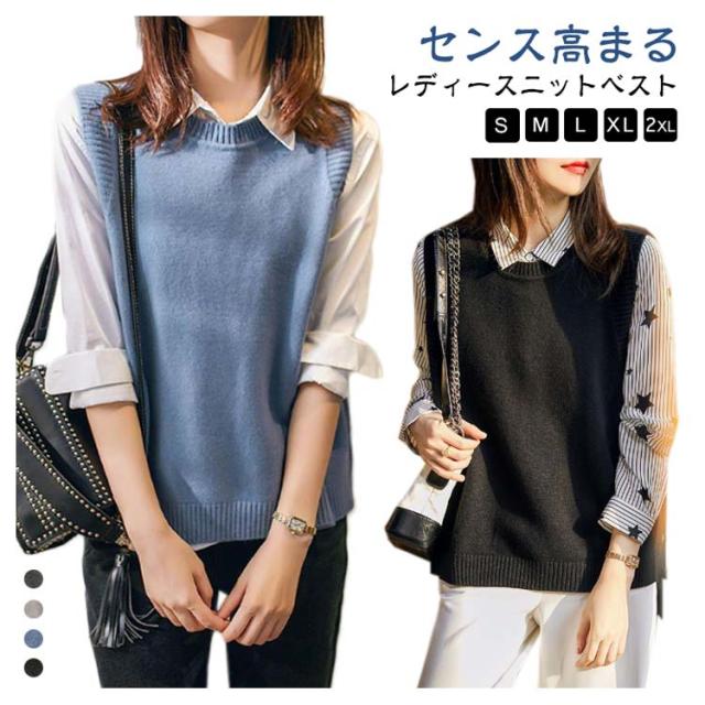 柔らか ベスト カジュアル おしゃれ ニットベスト ジレ 秋冬 大人 可愛い ラウンドネック ノースリーブ レディース トップス ナチュラル レイヤード シンプル 無地 大きいサイズ 袖なし 女性 スリット 春 きれいめ 秋冬 通勤 オフィス OL 体型カバー 重ね着