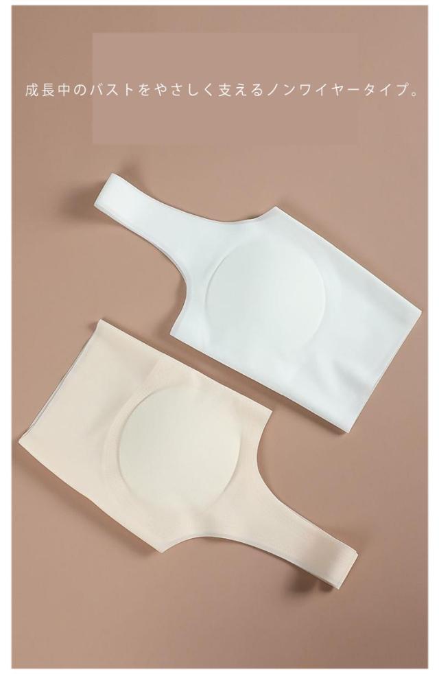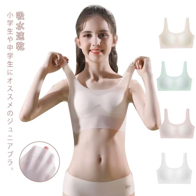 | 小学生や中学生にオススメのジュニアブラ。 超薄く涼しく汗を吸収し、通気性があり清爽な着用感を提供します 伸びのよい素材を使用し、フラット仕上げにすることで肌に縫い目がない。 肩に負担がかかりにくいストラップは安定感のある幅広タイプ。 成長中のバストをやさしく支えるノンワイヤータイプ。 ブラジャーに抵抗のある着け始めのお子さまに。 生地は吸汗速乾性素材を使用しているので、さらっとした肌あたりです。 シンプルなデザインのハーフトップ、ジュニア向けインナー。 | |