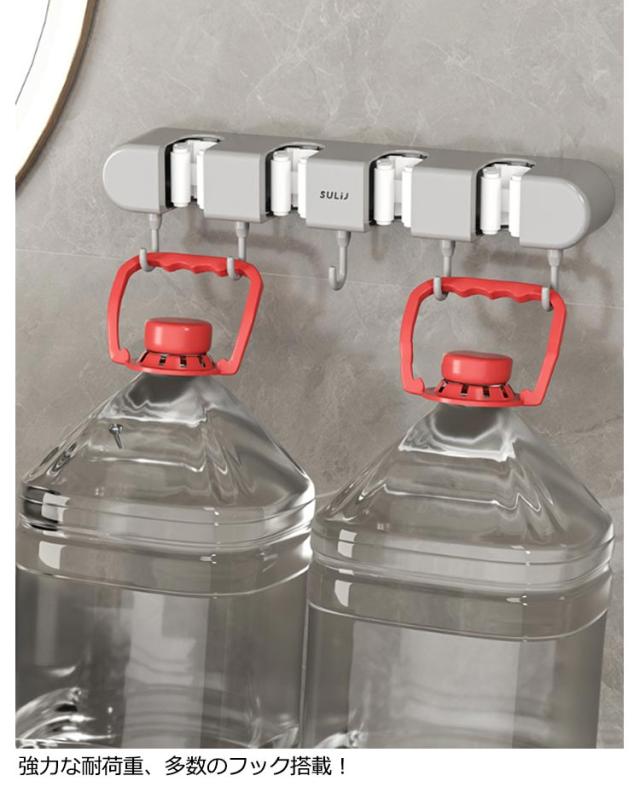 モップホルダー 壁掛けホルダー モップフック ハンガー 壁掛け モップ 4つホルダー モップ掛け 5つフック付き ほうきフック モップ掛け モップクリップ モップ整理 モップキャッチ キッチン ベランダ 収納 ホルダー バスホルダー ベランダホルダー モップ収納