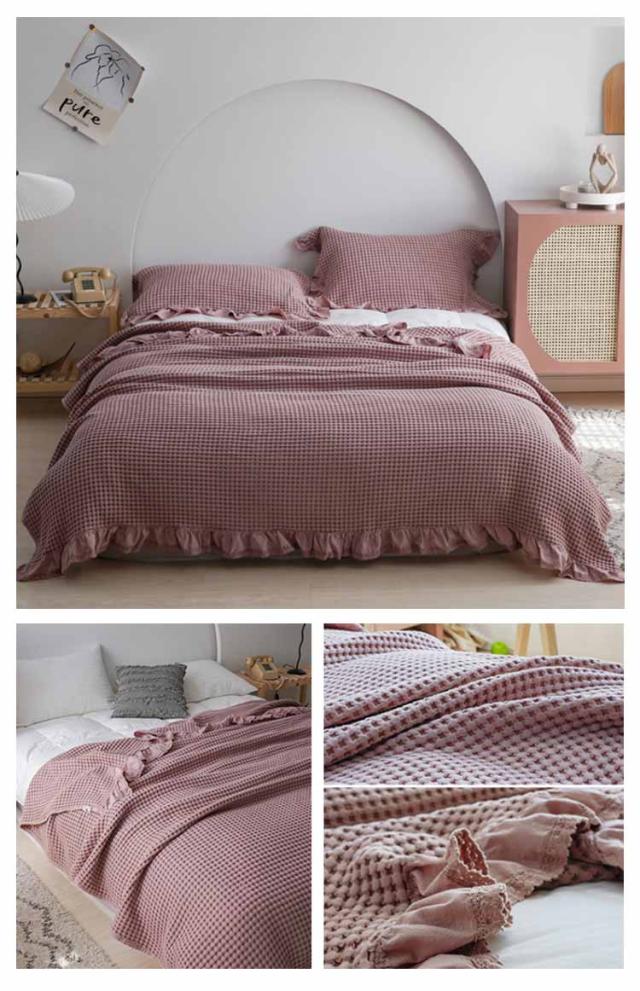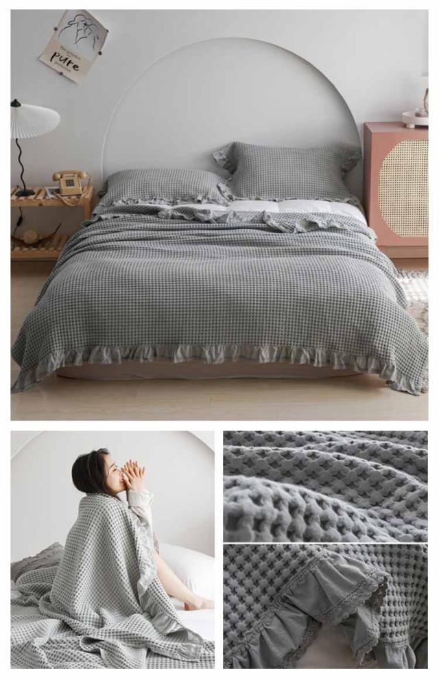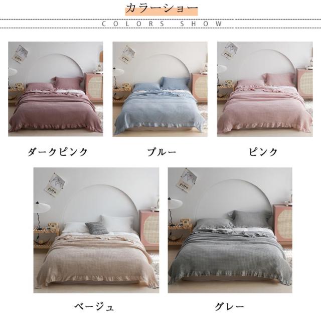 | 【さらっとした肌触り】 立体的なワッフル織が特徴的で肌に触れる面積が少なく、さらっとした肌触り。汗をかく季節も心地よく使用できます。 【ご自宅でお洗濯可能】 軽量なのでご自宅でのお洗濯も楽々おこなって頂けます。通気性が良いので雑菌が繁殖しにいのも◎。 【オールシーズン使用可能】 適度な厚みがクーラーのひんやりした空気から守り、凹凸でできる空気の層が保温性の役割も果たしますので冬は毛布代わりに。 一年を通してお使いいただけます。 【インテリアに馴染むニュアンスカラー】 どんなお部屋にも馴染むユニセックスでシンプルなデザインです。 | |
