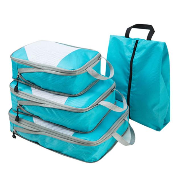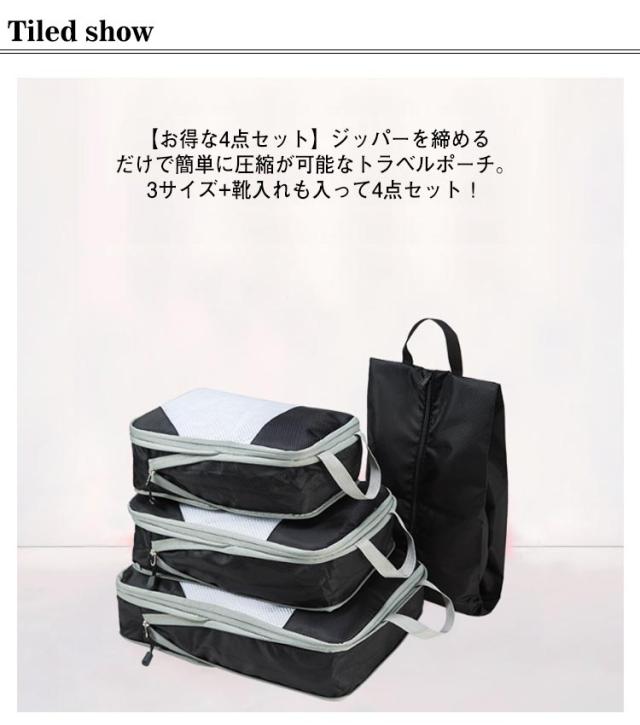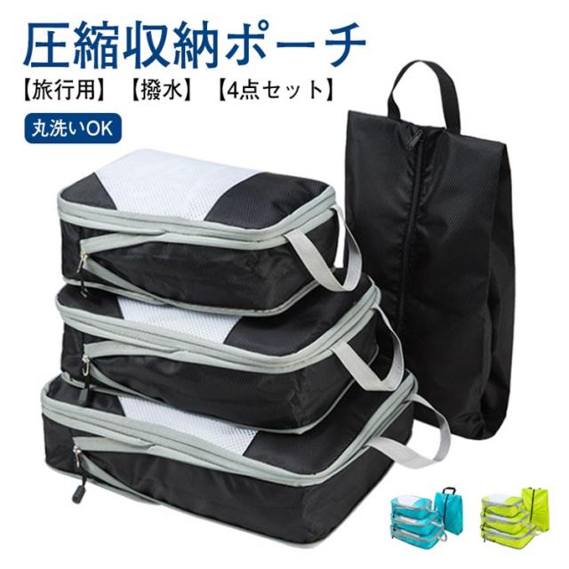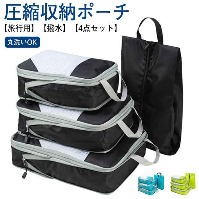 旅行 トラベルポーチ 圧縮 圧縮袋 衣類 豪華4点セット 収納ポーチ 節約 収納 靴袋付き 圧縮バッグ 旅行圧縮袋 おしゃれ コンパクト バッグ 50% 仕切り ファスナー 大容量 ポーチ 衣類スペース 旅行用圧縮袋 撥水 軽量 出張 簡単 圧縮