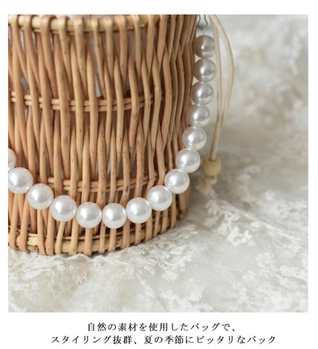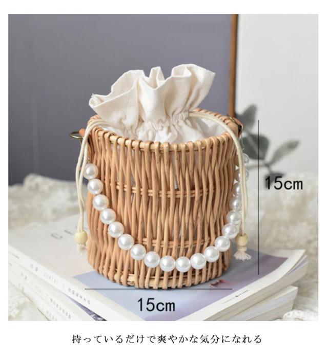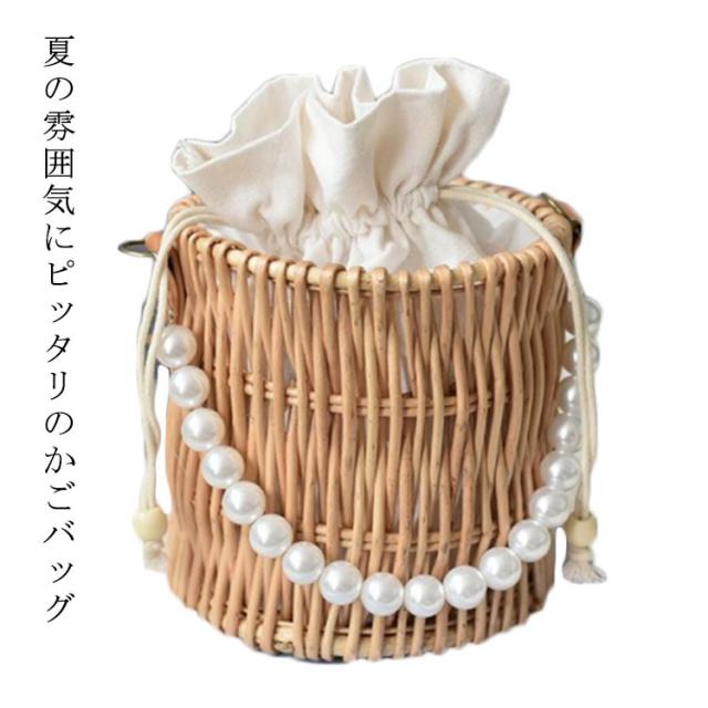 巾着付き かごバッグ 夏 可愛い パール付き 手提げ 編みバッグ パール持ち手 バッグ バスケットバッグ ハンドバッグ かご バッグ 編みかご 編みバッグ おしゃれ かぎ編み