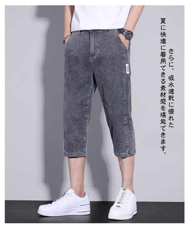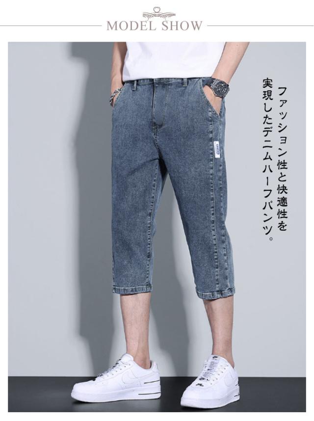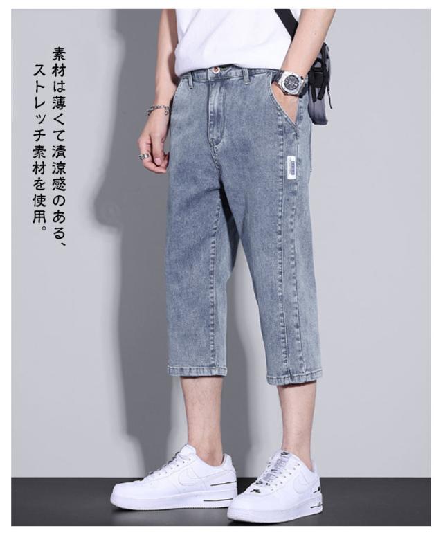 ショートパンツ ひざ下 薄手 クロップドパンツ 男の子 夏 膝下丈 大学生 涼しい メンズ デニム 膝下丈 男子 学生 ハーフパンツ 高校生 スリム 細身 デニムパンツ 短パン ストレッチ 7分丈 スポーツ デニムパンツ デニム