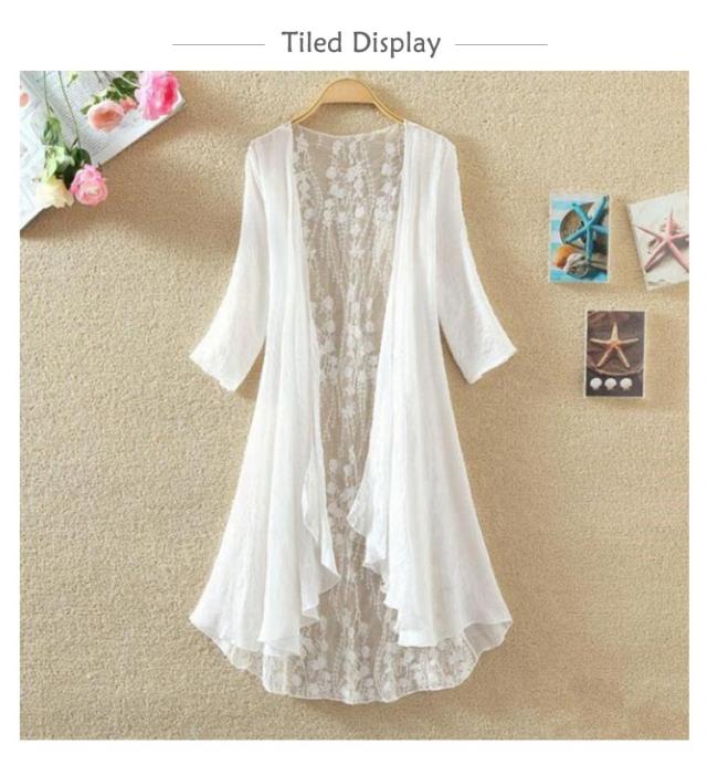 紫外線対策 バックレース 夏 七分袖カーディガン ロング丈 シースルー カーディガン 7分袖 レース ガウン ロングカーディガン サマーカーディガン 羽織り 薄手 涼しい 春夏 ひんやり UVカット 冷房対策 UV対策 大人 女性 部屋着 透け感